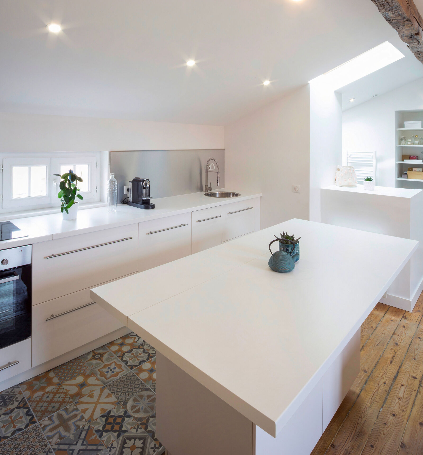 Situé au cœur des Chartrons, à deux pas du Jardin Public, Garden se niche sous les toits d’un immeuble en pierre typique du quartier. Ce petit appartement, baigné de lumière grâce à ses rampants et ses ouvertures zénithales, a fait l’objet d’une rénovation totale visant à révéler son charme d’origine tout en repensant intégralement ses usages.